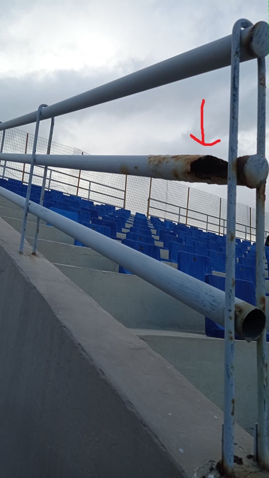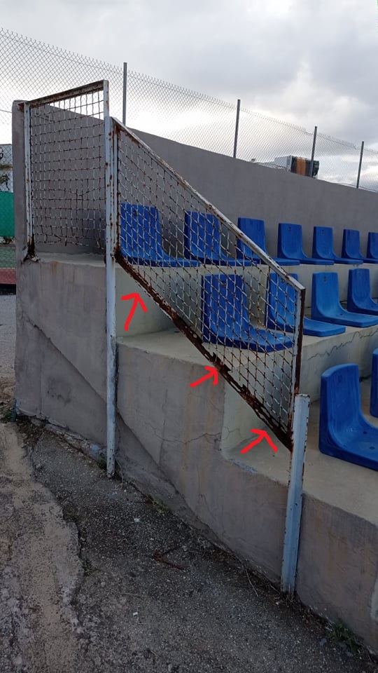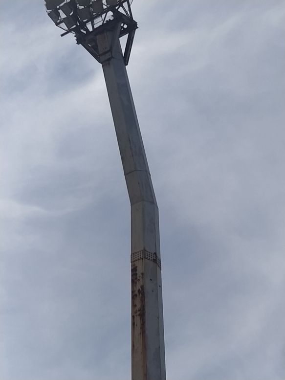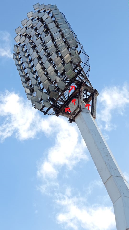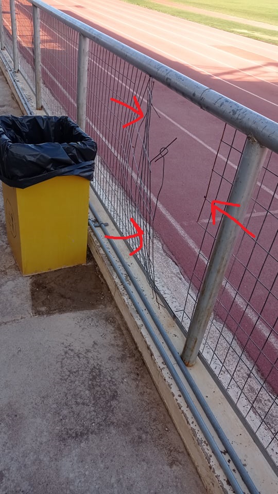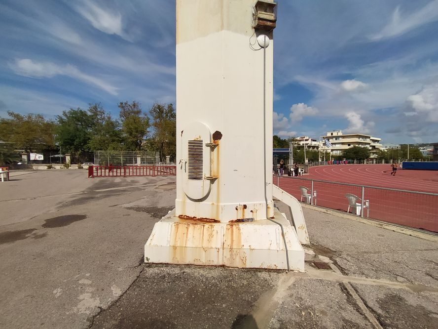 Μια εικόνα που προκαλεί δικαιολογημένα προβληματισμό και ανησυχία στους εκατοντάδες αθλούμενους, είτε πολίτες, είτε αθλητές συλλόγων, που καθημερινά επισκέπτονται το Στάδιο είτε ακόμα και σε γονείς που στέλνουν τα παιδιά τους εκεί για άθληση. Βέβαια η ανησυχία δεν περιορίζεται μόνο στους προβολείς αλλά και σε αρκετά ακόμα σημεία του Σταδίου.