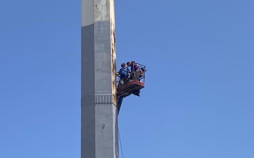 Σύνδεση, συντήρηση και βάψιμο των πυλώνων στο Εθνικό Στάδιο Χανίων