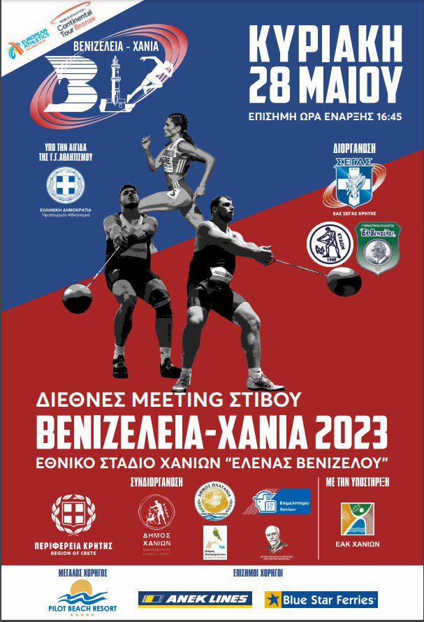 Στα Χανιά την Κυριακή 28 Μαΐου θα χτυπά η καρδιά του Ευρωπαϊκού στίβου, αφού το διεθνές μίτινγκ στίβου «ΒΕΝΙΖΕΛΕΙΑ – ΧΑΝΙΑ 2023», που διοργανώνεται Σ.Ε.Γ.Α.Σ., Α.Ο. Χανίων Κύδων, Γ.Σ. Ελ. Βενιζέλος και Ε.Α.Σ. Σ.Ε.Γ.Α.Σ. Κρήτης, με συνδιοργανωτές: την Περιφέρεια Κρήτης, το Δήμο Χανίων, το Δήμο Πλατανιά, το Δήμο Αποκορώνου, το ίδρυμα Ερευνών και Μελετών «Ελευθέριος […]